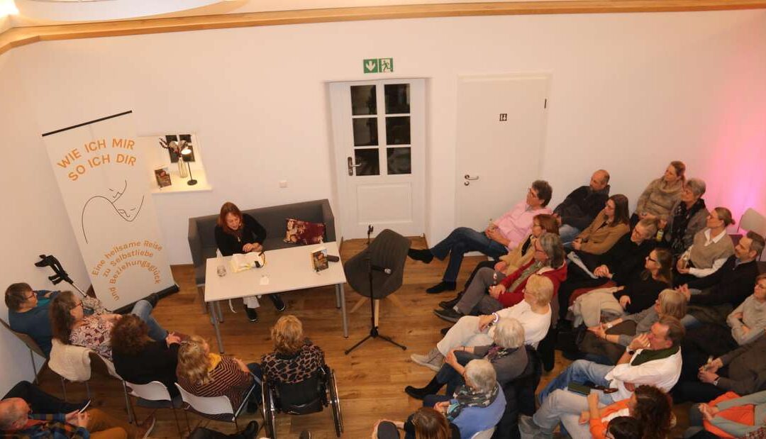 Im Mittelpunkt stand mein Buch „Wie ich mir, so ich dir – eine heilsame Reise zu Selbstliebe und Beziehungsglück“. Kein klassischer Ratgeber, sondern ein erzählendes Sachbuch, das fachliches Wissen, therapeutische Erfahrung und persönliche Lebenswege miteinander verbindet. Die Lesung kreiste um zentrale Fragen: Wie frei sind wir wirklich in unseren inneren Entscheidungen? Welche frühen Prägungen wirken bis heute in unseren Beziehungen? Und was bedeutet es, zu sich selbst zurückzukehren? Meine Einladung an diesem Abend war bewusst keine Sammlung von Ratschlägen. Vielmehr ging es darum, das Herz anzusprechen und Räume zu öffnen, in denen Zuhörerinnen und Zuhörer sich selbst wiederfinden konnten. Viele Rückmeldungen nach der Lesung beschrieben genau das: ein inneres Wiedererkennen, Nachdenklichkeit, Berührtsein.